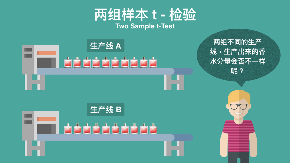 在这里,他们从两条的生产线(A和B)抽样得到两组香水分量的数据。
