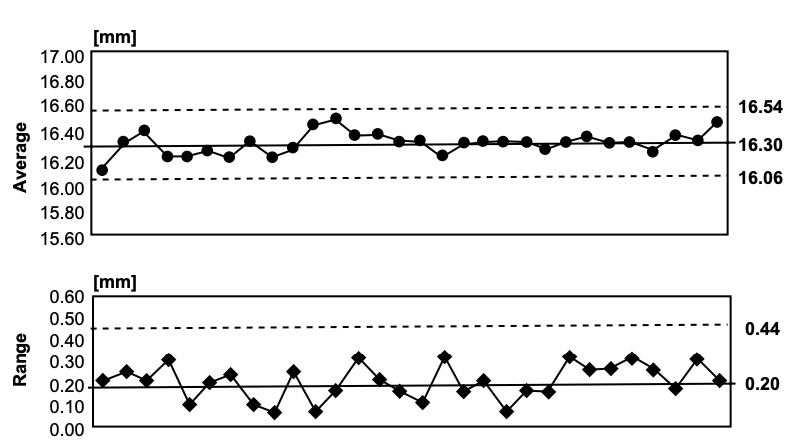 对于穿孔的高度,目标值为16.35mm,规格上限设定为16.50mm和规格下限为16.20mm。两种不同的类型